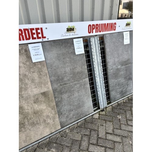 De OPRUIMPARTIJ Keramische actietegel 60x60x3cm Marseille antraciet. Onze leverancier verkoopt het hele assortiment om ruimte te maken voor het nieuwe assortiment en hier is de prijs ook op gebaseerd. U kunt dit product ook komen bekijken in onze showtuin. Indien deze tegels worden opgehaald rekenen wij per pakket € 20,00 statiegeld per europallet. Er zitten 40 tegels oftewel 14,40 m2 op een pallet.